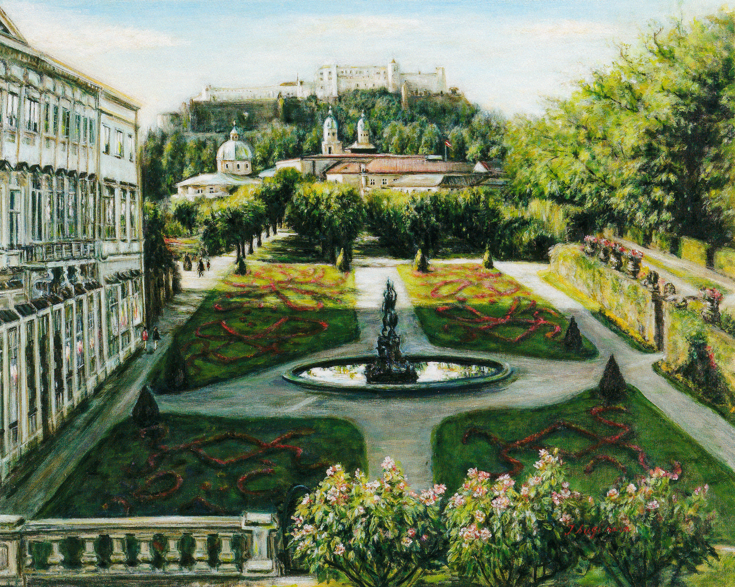 杉原豊子(すぎはらとよこ) 昭和21年~(1946~)洋画家。宮崎県生まれ。現在長崎市在住。1970年日本音楽学校卒業。幼少から絵画・音楽に親しむ。1977年三宅明グループで油彩画を習い始め、独・伊・墺を訪問後、主にこれらの地の風景を描く。2007年「長崎市美術展」で『アルトハイデルブルグ』出品、初入選。同年、「国際美術協会展」秀作賞、2008年でも『古都の秋日』で奨励賞受賞、同年『スイレンの思い出』で「太陽美術展」会友優秀賞を受賞。2009年「国際美術協会展」優秀賞、2011年「太陽美術展」で『演奏家の想い』が無鑑査。2012年「国美芸術展」東京都議会議長賞。2016年「日伯友好 150年記念展」東洋芸術大賞(ベルギー)。2016年「国美芸術展」総合審査委員長賞、2017年「国美芸術展」最優秀作品賞。2010年長崎ブリックホールで 「独・オーストリア風景画展」、2013年同ホールで「猫と風景画の作品展」を開催。2018年『杉原豊子画集』を出版。同年「画集出版記念展」を昭和堂ギャラリーで開催。作品収蔵は放送大学(長崎)、独・タンガーマンデ協会永久収蔵など。現在、国美芸術家協会名誉会員。日欧宮殿芸術協会会員。