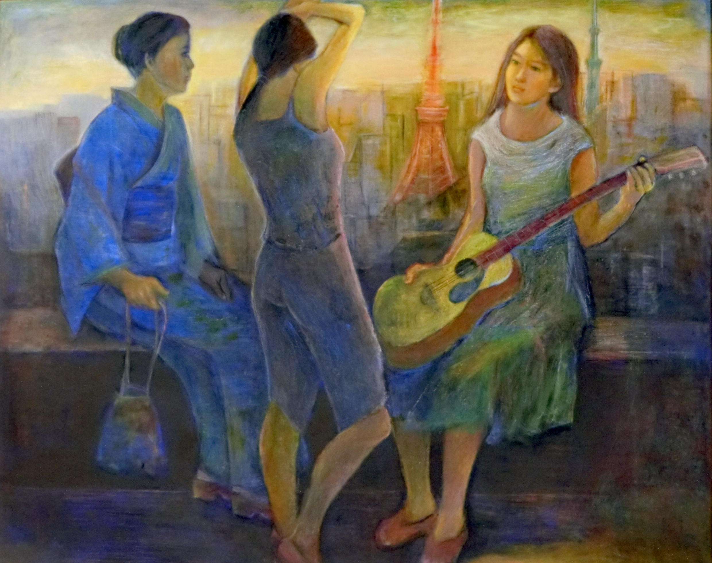“The Sparkling Two Towers” A Long-Distance Dialogue between Tokyo Tower and Sky Tower Oil Painting