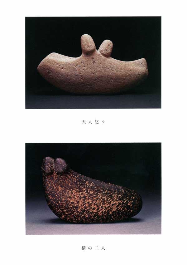 TAKEUCHI Kunio Stone sculptor. Born in Aichi Prefecture. Currently resides in Okazaki City, Aichi Prefecture. Studied under Suzuki Masao. Since 1967 he has presented many works, mainly at personal exhibitions in places such as Nagoya, Kanazawa, Tokyo, and Osaka. Uses stone sculptures rooted in Japan’s traditions and climate and modern forms of Japan’s traditional beauty that are the pride of Japanese people, and takes on major tasks of how to create things. Installed a stone image at Okazaki Municipal Mikawa Junior High School in 1985. In 1997, installed a stone sculpture at Nagoyaka House Sanjo, a special elderly nursing home in Nagoya. In 2000, received a Nikkei Shimbun Shijo Gallery 20th century grand prize art grand prize. In 2001, exhibited at the 6th Musashino Art Festival, received a ONE art grand prize at International Art Exhibition ONE (Cashman Field Center in Las Vegas), and installed a stone sculpture at Meito Art Museum in Nagakute City. In 2002, installed a stone sculpture at Otoshiyori Sukoyaka Center North Building, which is a care and health facility for elderly people in Osaka City. The same year, was invited to exhibit at Japan Art Association Exhibition. In 2008, published a collection of works titled “Kurashi no naka no sekicho.” Was introduced twice on Tokai Television news. In 2011, held a personal exhibition at the Matsuzakaya store in Nagoya. Many works are included in collections at places such as hospitals, schools, homes for the elderly, country clubs, and by individual collectors. Representative works include “Ten ni inoru,” “Yorisou futari,” and “Sannin sanyo.” Currently unaffiliated.