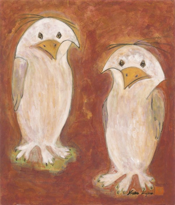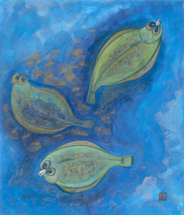 加島典子(かじまのりこ)昭和21年〜(1946〜)日本画家。東京都生まれ、文京区在住。祖父・樵舟、父・一鷺と続く日本画家の家に生まれ、伝統的な心技を踏まえながらも新しい創造を目指している。2000年より4年に一度、銀座・文藝春秋画廊にて「加島典子−日本画の世界展」を3回開催。 2005年『桜−満開』がAMSCより「パロラル(品格のある)徽賞」受賞。『茶山花』が「ル・サロン展」入選。『梅の実』は「中日国際現代美術展」にて「平湖秋月賞」。「コートダジュール国際芸術祭」にて《プリ・ドヌール(特別)賞》の『鏡の中のシンビ ジウム』は現国王アルベール2世即位祝いにモナコ公国文化庁に収蔵。『風神雷神図』はタイ皇室より王妃誕生日祝賀にて《日タイ交流勅選芸術勲章》受勲。 2013年『桜-満開』はオーストラリアの切手となる。『キノコ』は2018年チェンマイ王朝プリンスのチャオ・バキナイ後援のもとタイのCACCに収蔵。「パリ・ルーブル展」に出店販売。2019年日本政府各省後援パリ個展。作品集「加島典子-日本画の世界」出版。『加島典子芸術記念館』にて作品を公開(東京都文京区千石2-10-14)。スペイン国立プラド美術館財団元正会員。