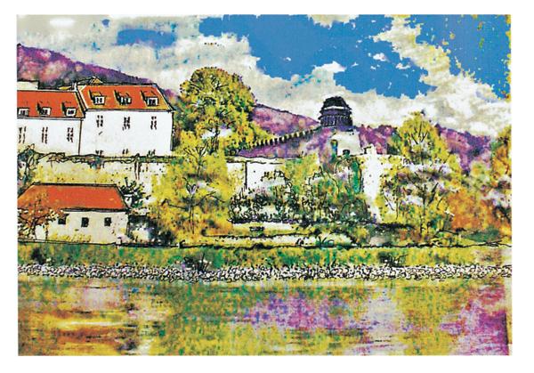 宮本景(みやもとけい)昭和6年〜(1931〜)洋画家。香川県高松市生まれ。現在、兵庫県在住。本名・秋義。みずゑ光陽会主宰。ソフトグラフ・PC画作家。児童生徒絵画展審査員。高齢者美術展審査委員。絵画療法研究実践家・(矯正管区、不登校、引篭もり、虐め、暴力児童生徒)(発達障害者自立支援)。ヨーロッパ、北欧バルト、カナダ、オセアニア各国の橋のある風景、水辺風景などを主に描く。河と橋の取材のため、50数ヶ国を外遊。個展・グループ展30回。2017年、砂絵療法活動に対し藍綬褒章を受章。2019年、西日本・千葉の災害支援にチャリティー「砂絵展」を開催、災害地の支援活動を展開。砂絵療法の普及に邁進している。幼小中学校・保育園・市民講座での造形指導、父母と子・祖父母と子孫の絵画教室指導。高齢者のための創作活動教室(特に右脳活性化)など様々な活動をしている。