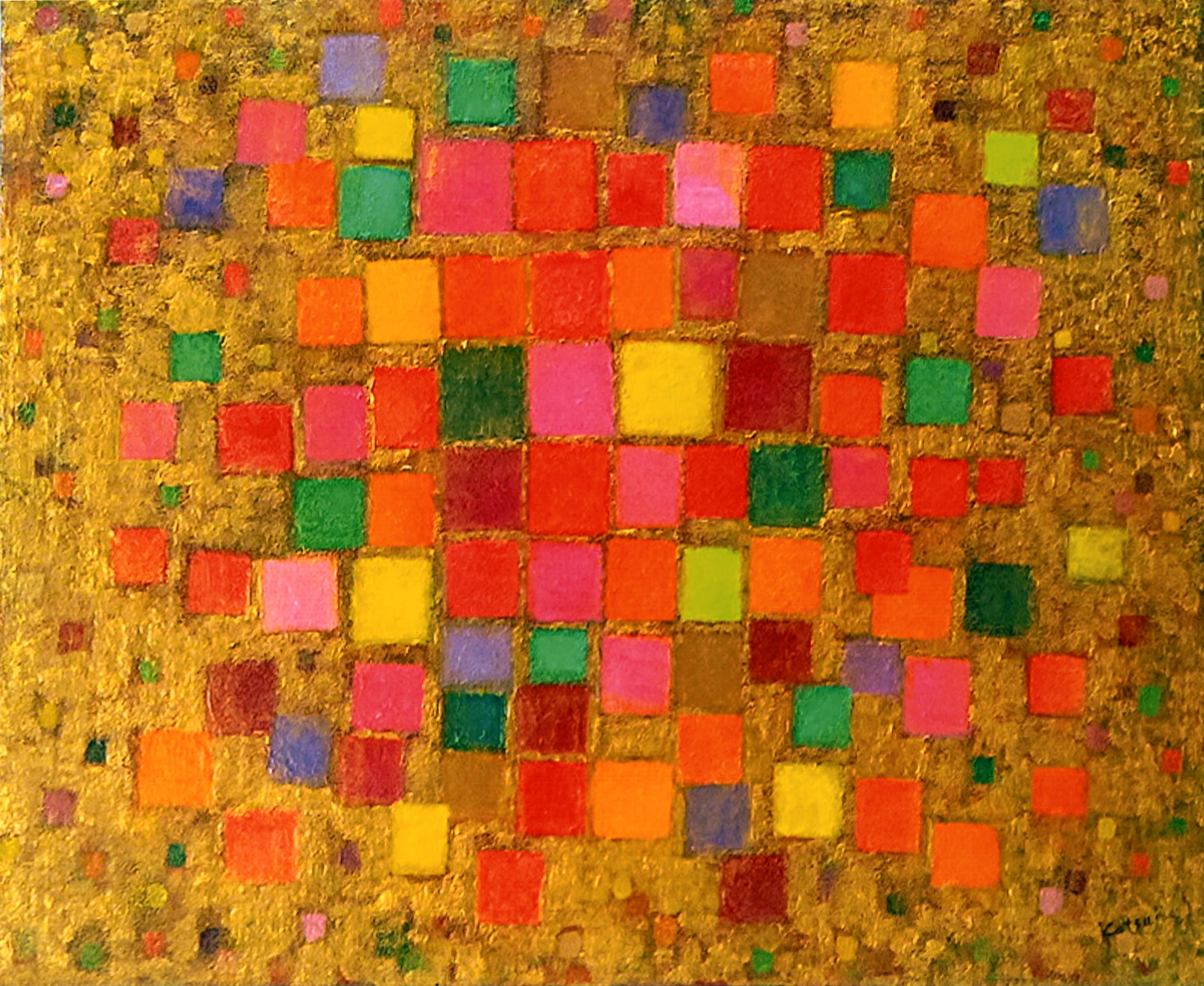 東郷克治(とうごうかつじ)昭和13年~(1938~)洋画家。福井県生まれ。早稲田実業・高等部在学中より「耺美協」中央美術研究所で学ぶ。御茶の水美術学院を修了し絵画制作に入る。1972年「主体展」に初出品、2001年まで30回連続出品。その間、3回佳作作家に推薦される。その後出品を止め無所属となる。2012年に初期からの作品集を刊行。2015年に娘さんを亡くされ、それを契機に今までの具象表現から抽象表現に変わった。2018年にその間描いた抽象画の作品集を刊行。2024年フランス芸術家協会主催、第234回「ル・サロン」に具象画『白川郷』で入選。個展は現在までに紀伊国屋画廊等16回開催。代表作に具象画『待』(まつ)、抽象画『誕辰』など。現在、日本美術家連盟会員。