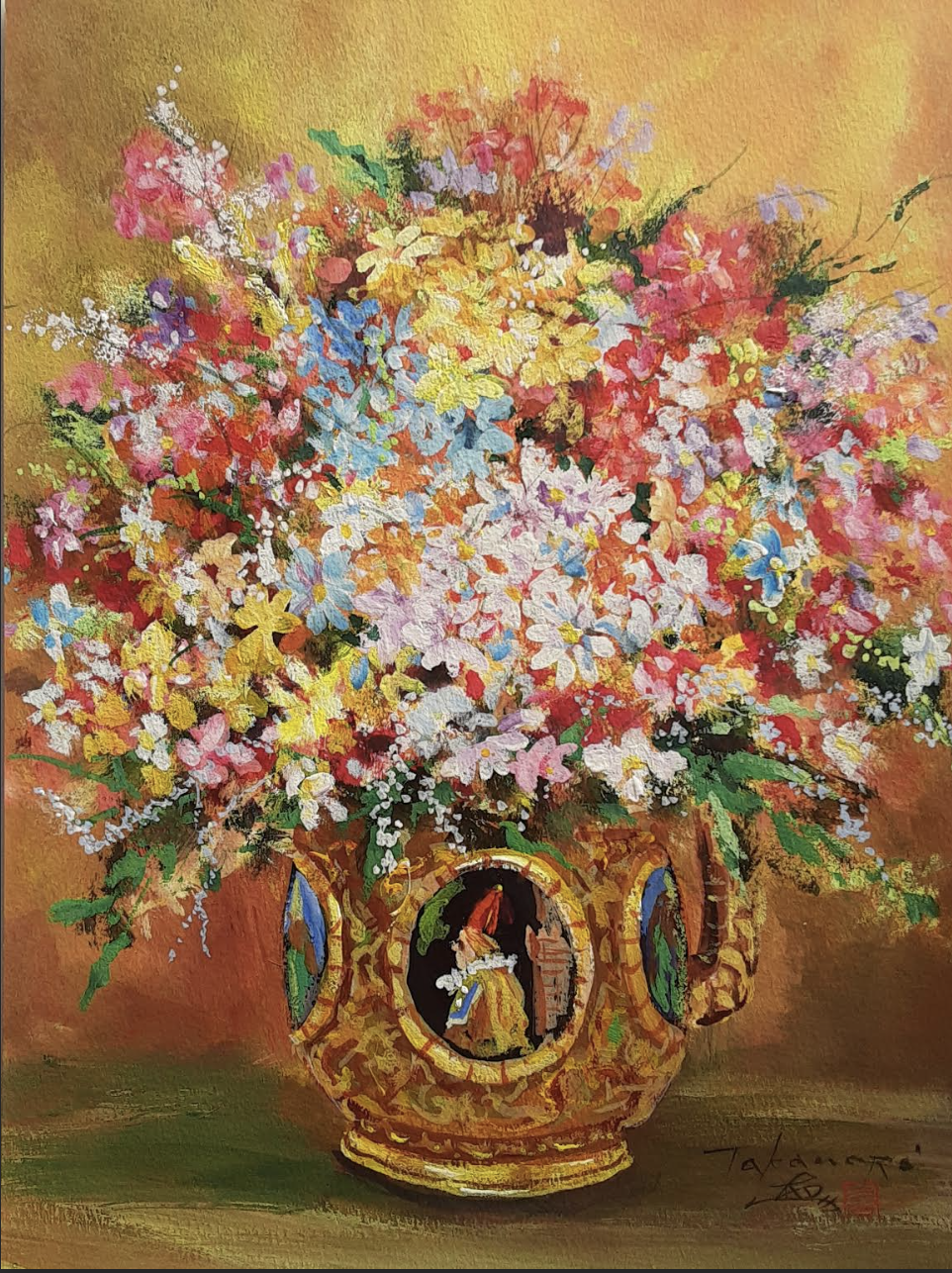 八尋隆徳(やひろたかのり)昭和24 年~ (1949 ~ ) 洋画家。福岡県生まれ。本名・賢三。代々曾祖父の代まで博多総鎮守櫛田神社宮司・元宮司家に生まれる。1969 年光風会美術研究所、東京デザイナー学院で絵画、イラ ストを学ぶ。1973 年「第39 回旺玄会展」入選。1975 年会員推挙されるが退会。1975 年「第 61 回光風会展」入選、第68 回展まで連続入選。日展、若林稔・桐野江節雄先生に師事。1985 年 より無所属にて個展、グループ展に多数参加、また、公募団体等にも出品し芸術褒章を受章、 国際賞、日露修好150 周年展、都議会議長賞、特選等数多く受賞。現在は寺社等に奉納活動。人 物画を得意とするが近年、岩礁を自己に置き換え『自心像シリーズ』を制作活動中。